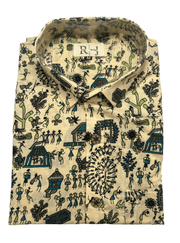 Sanganeri Beige Print Shirt - Tribal Village Portrait