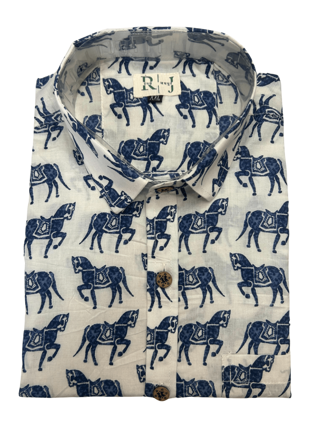 Rajasthan Lahriya Sky Blue Print Shirt – Handcrafted