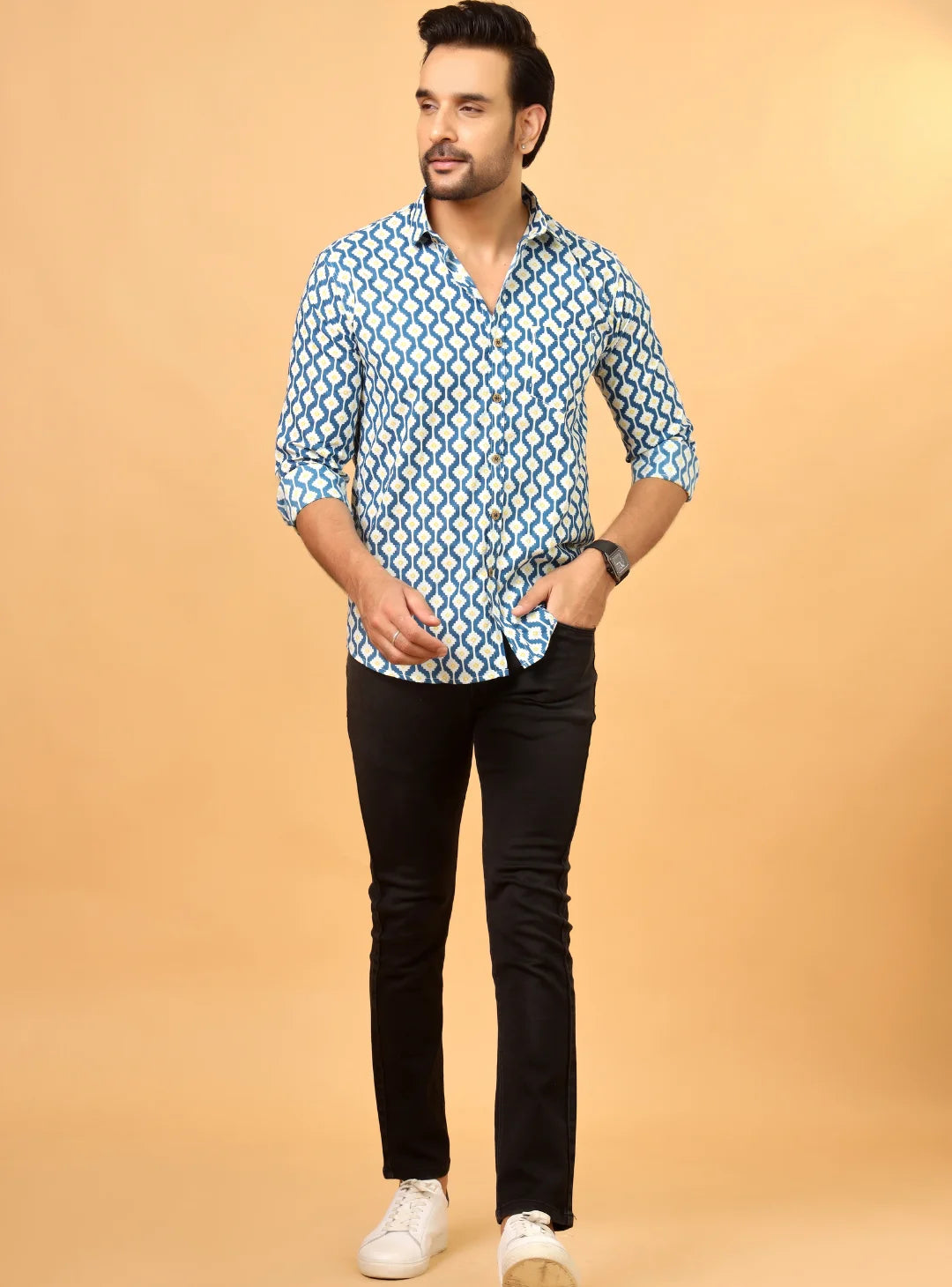 Jaipuri Handblock Sanganeri Print Cotton Shirt